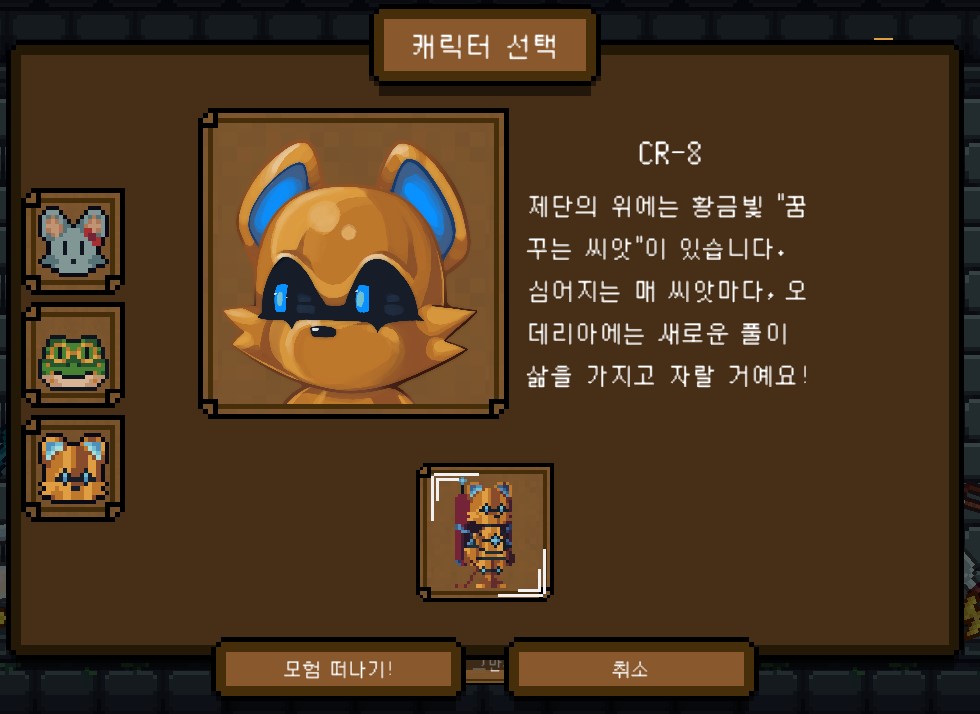 CR-8 캐릭터의 설명이 원문과 다른 것 같아 보입니다