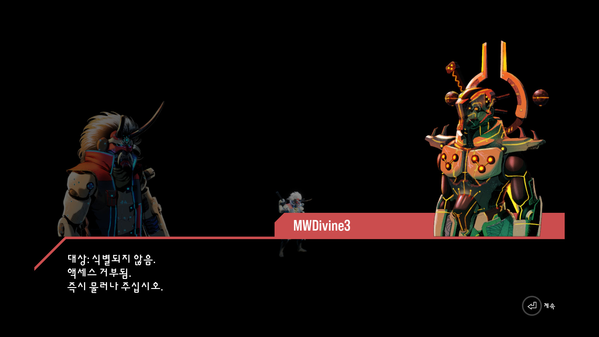 <쇼군의 성으로 가면 로봇들이 등록된 모습과 다르다고 싸움을 걸어오고>