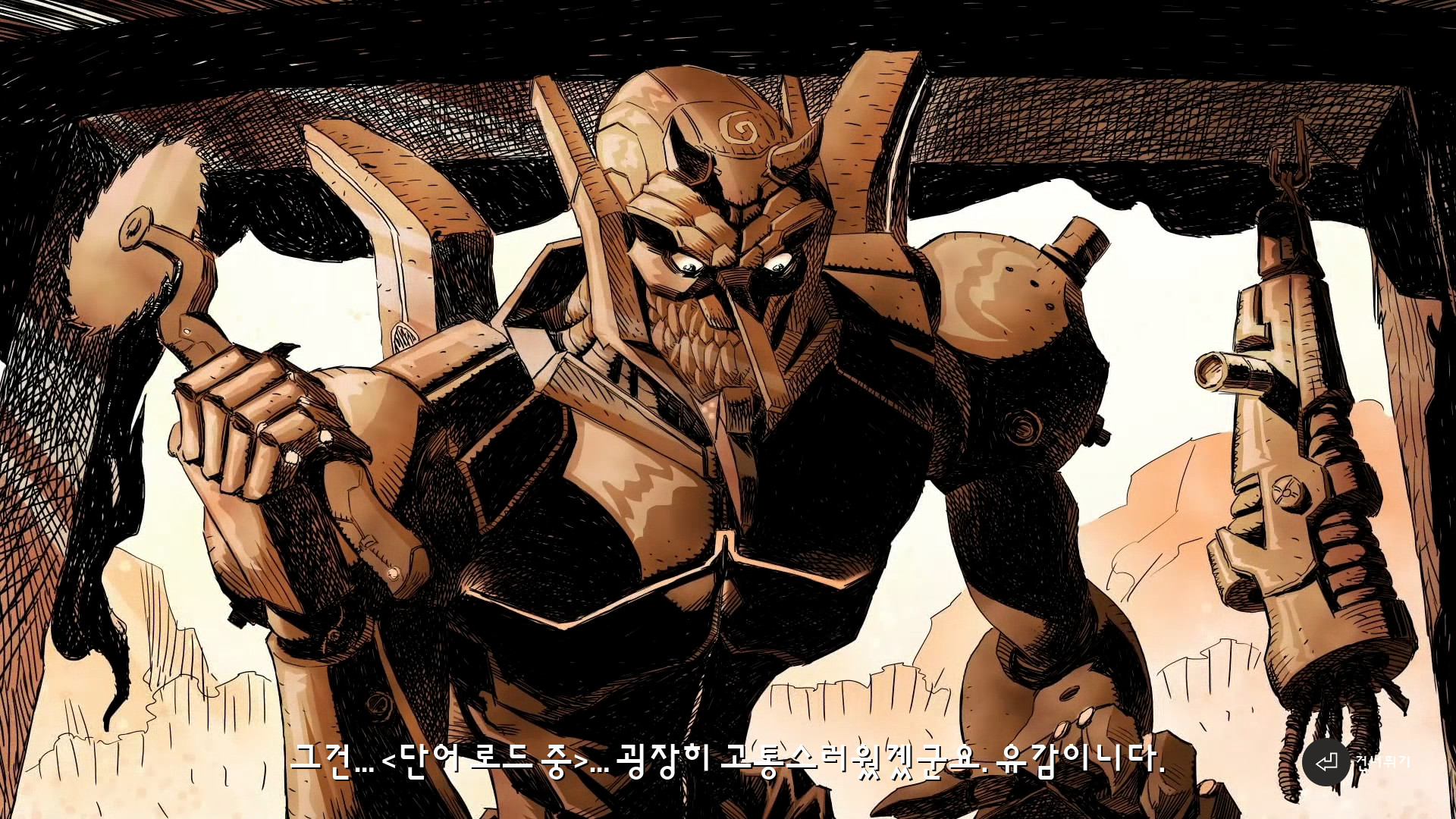 <주인공이 갓파를 만나고 신체가 기계로 대체된 사연을 이야기 해주는데요>