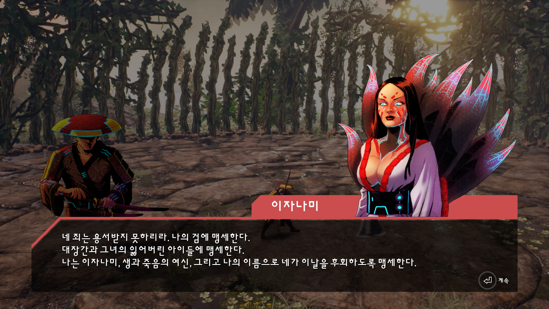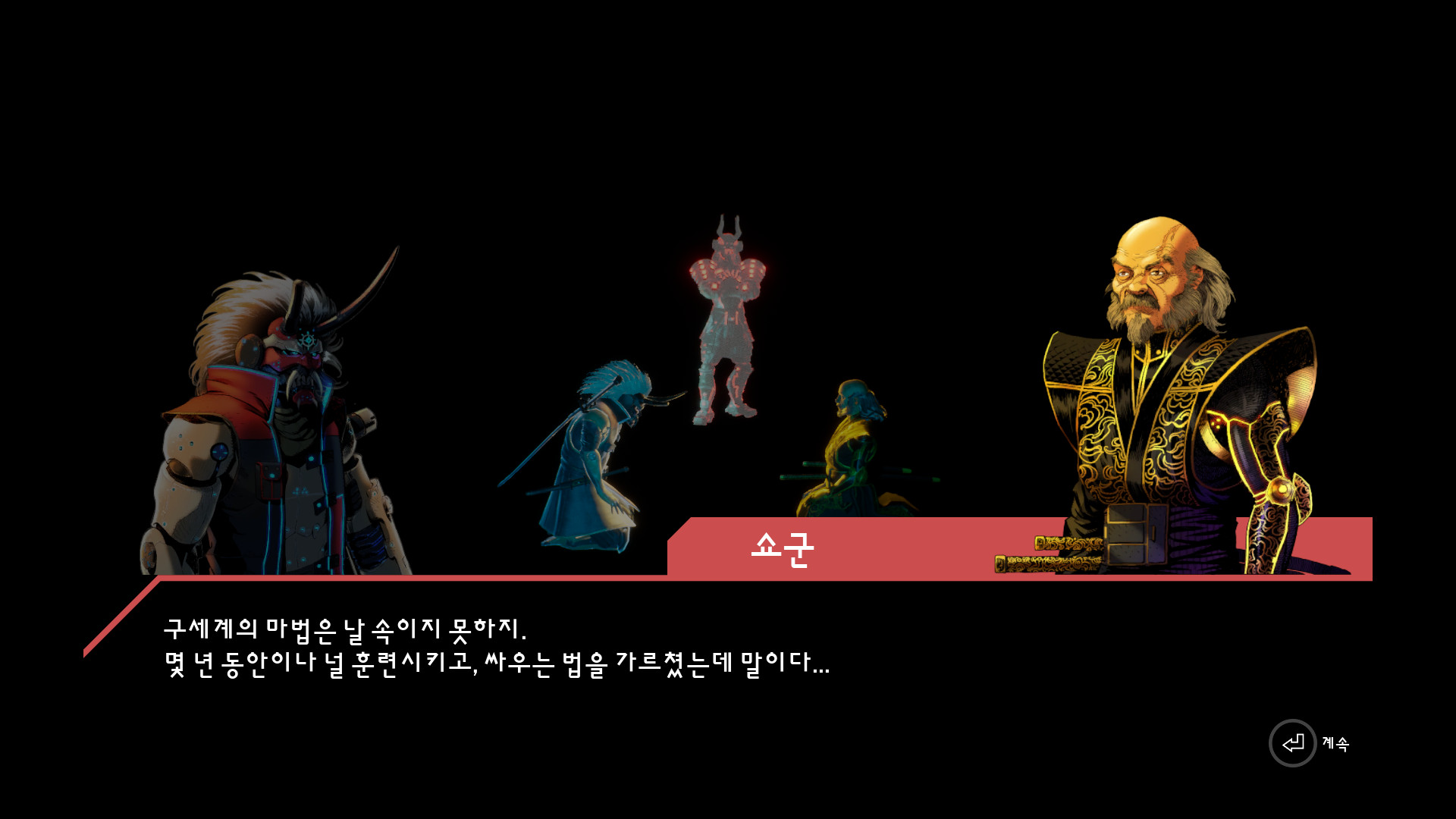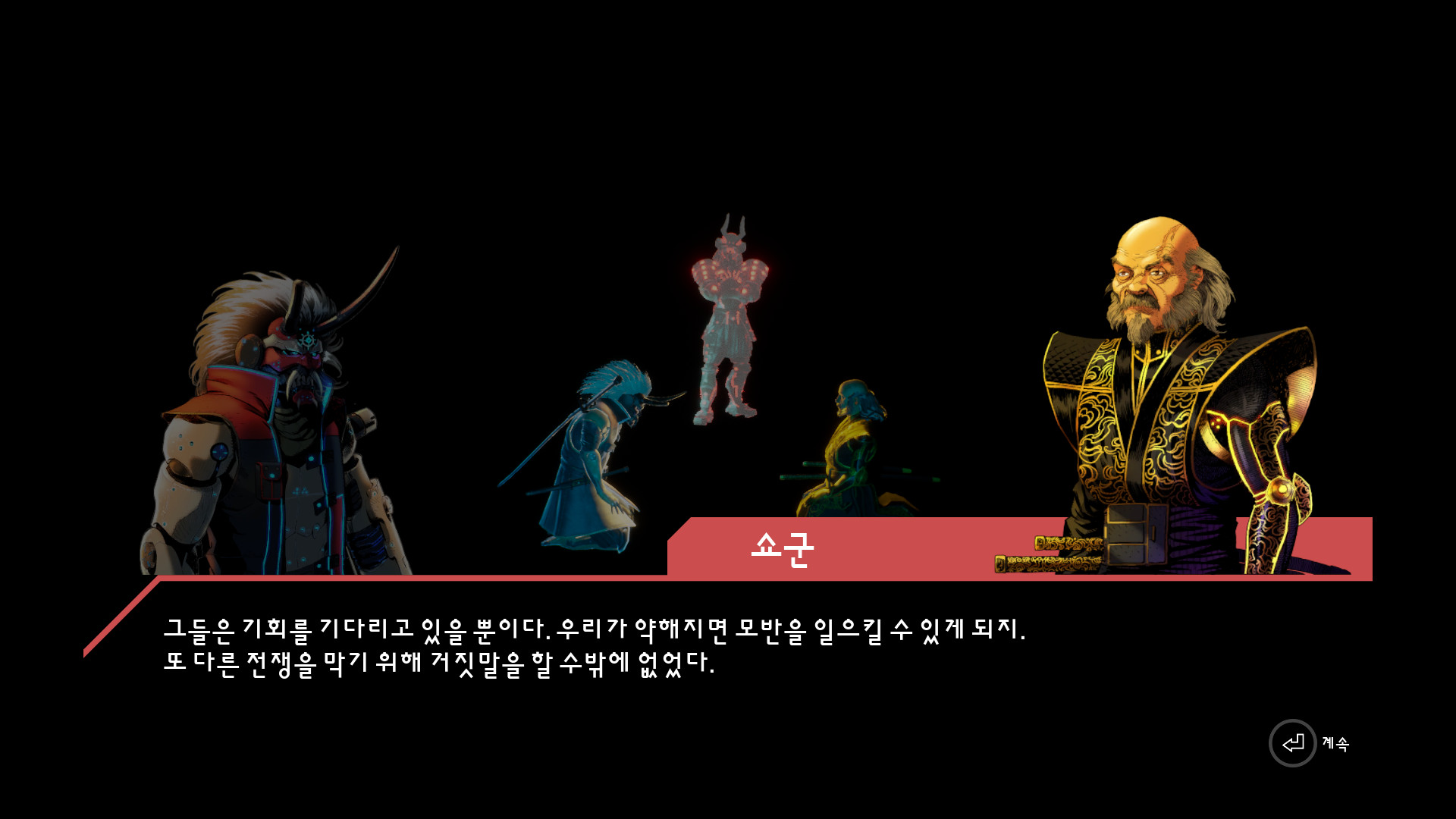 <몇번의 교전을 거쳐서 쇼군과 만나고 눈을 잃은 사연을 이야기 해줍니다.>