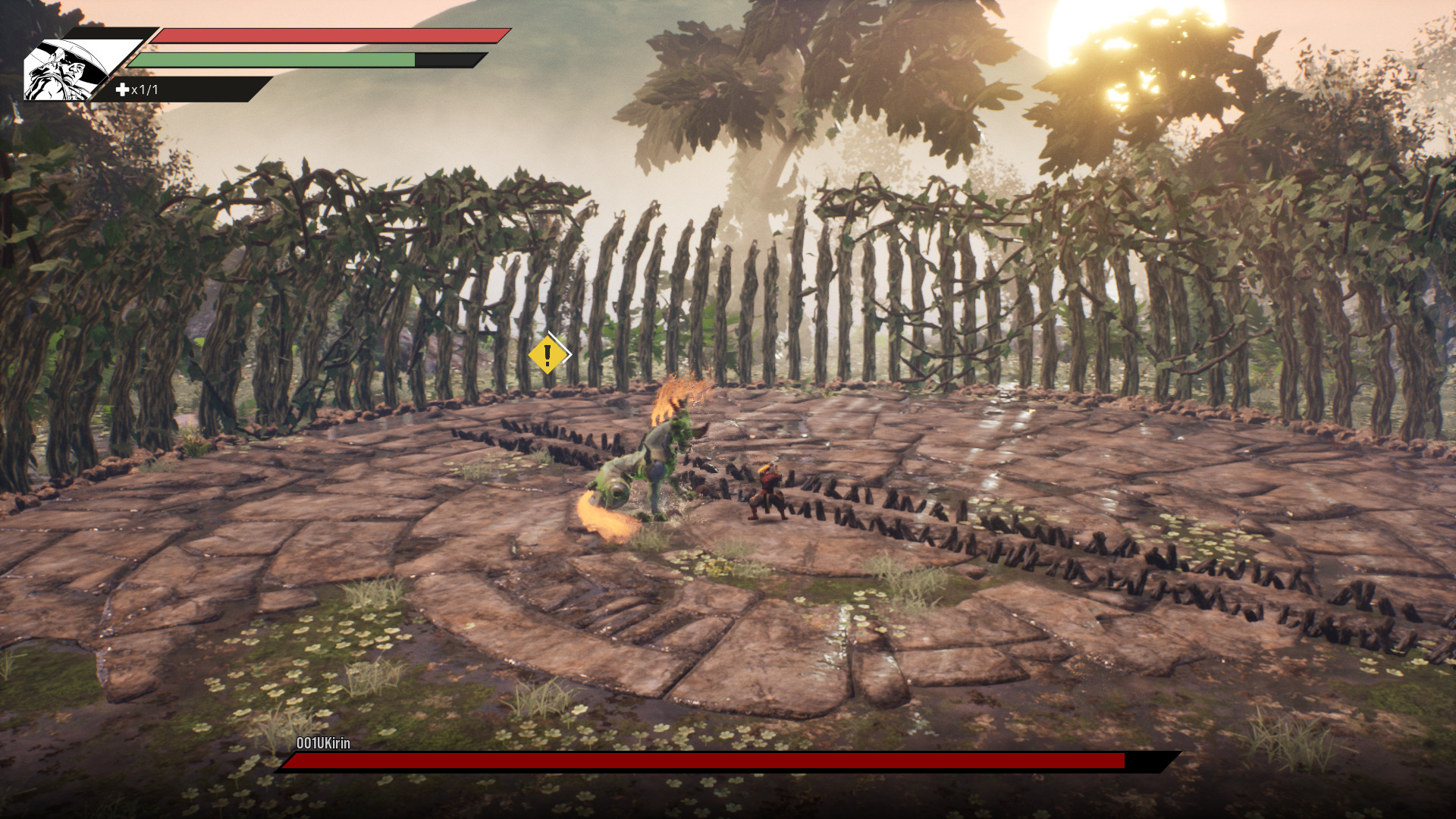 QTE를 성공시키면 키린이 스턴되고 다가가서 3~5대 정도 때리고 굴러서 도망쳐야 합니다.