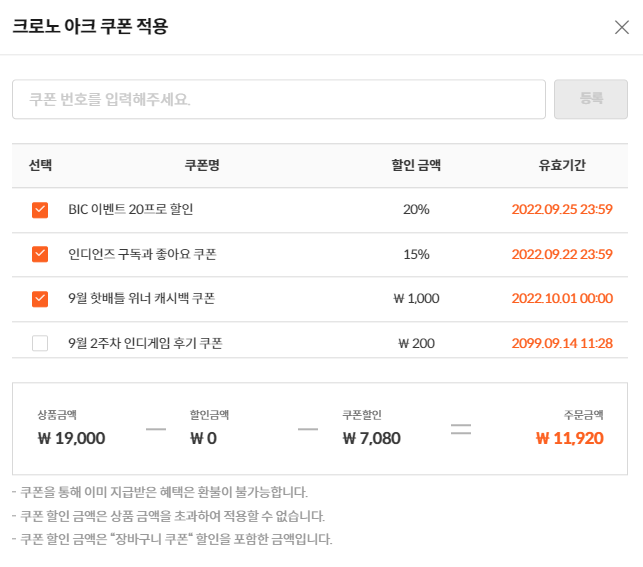 그리고 저거 랜덤쿠폰이였는데 20퍼센트 당첨!