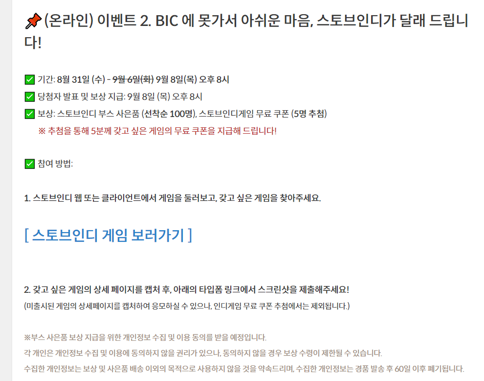 BIC 에서 스토브 인디 찾기 이벤트를 하는데