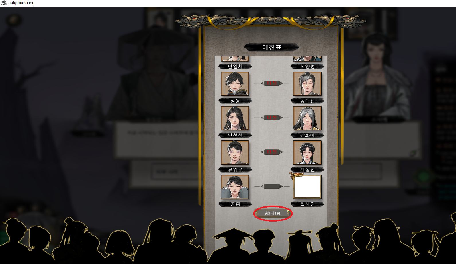 문파가입시 비무때 밑에 동그라미 친 부분이 중문으로 나옵니다.