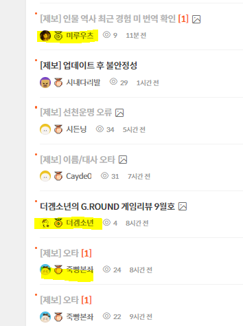 대충 30~50개 정도 글을 올린분들은 금 이더군요