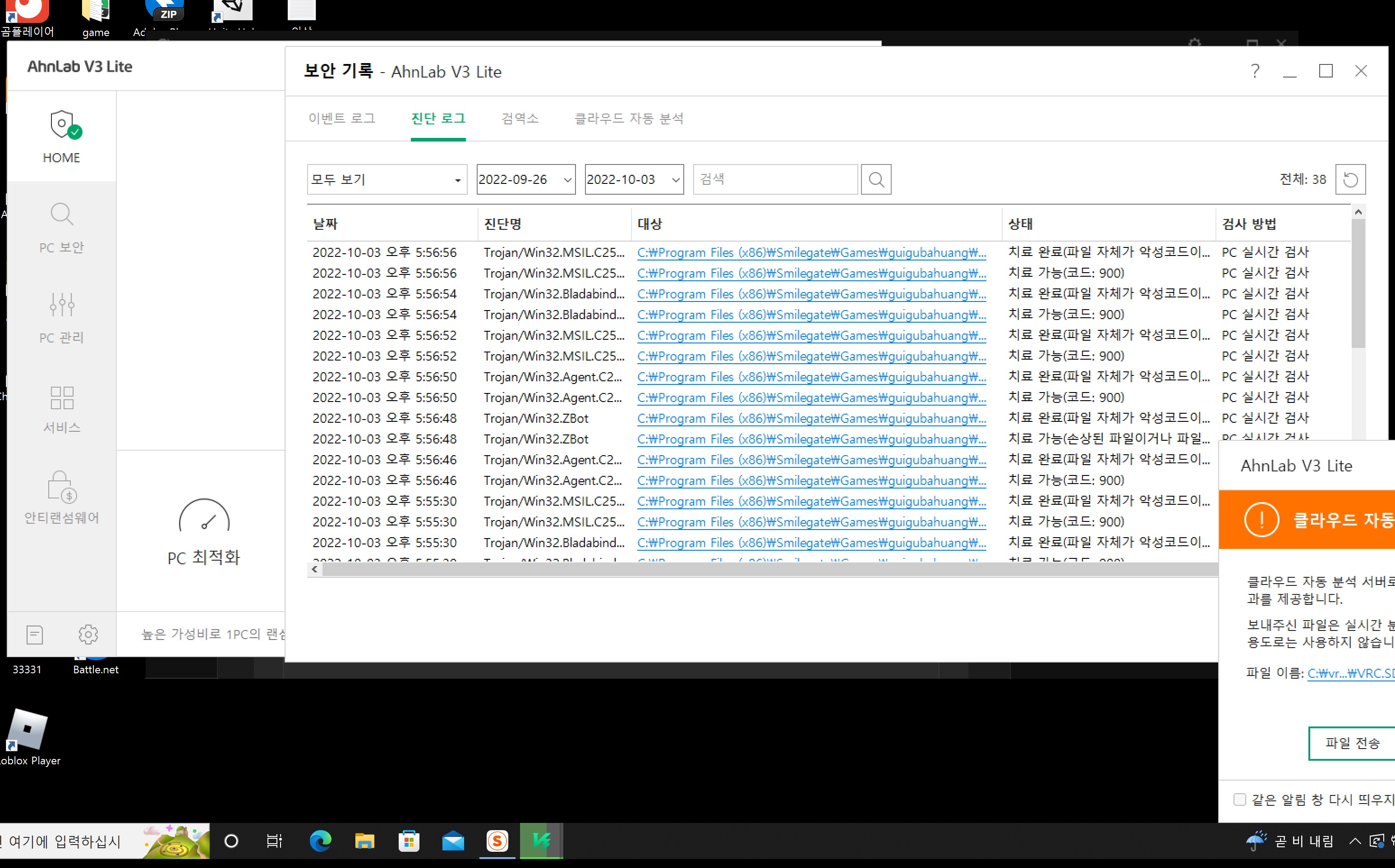 모드깐것도 없이 처음 돈주고 구매해도 저런식으로 바이러스뜨는데 검사예외를해라?
