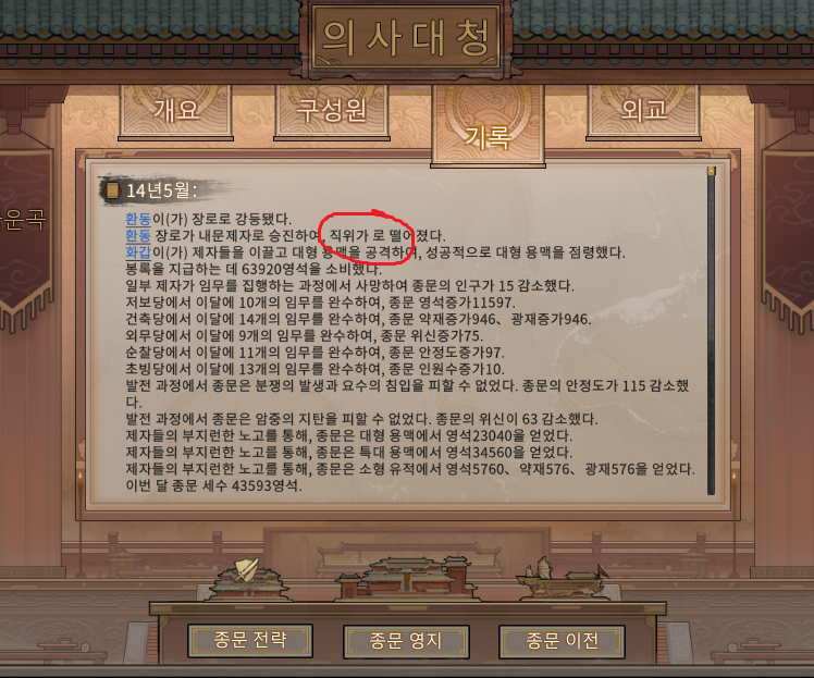 장로 NPC가 강등된 후 직위가 '~'로 떨어졌습니다