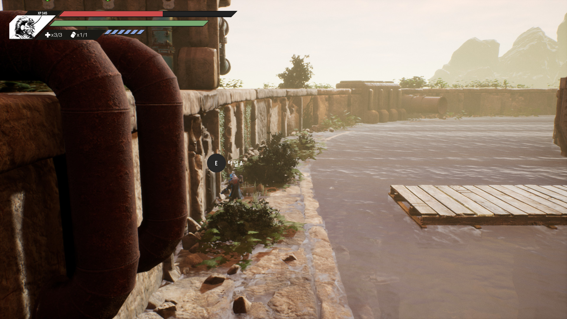 <뗏목을 지나서 건너 기슭으로 오면 설화 조각이 있습니다.>