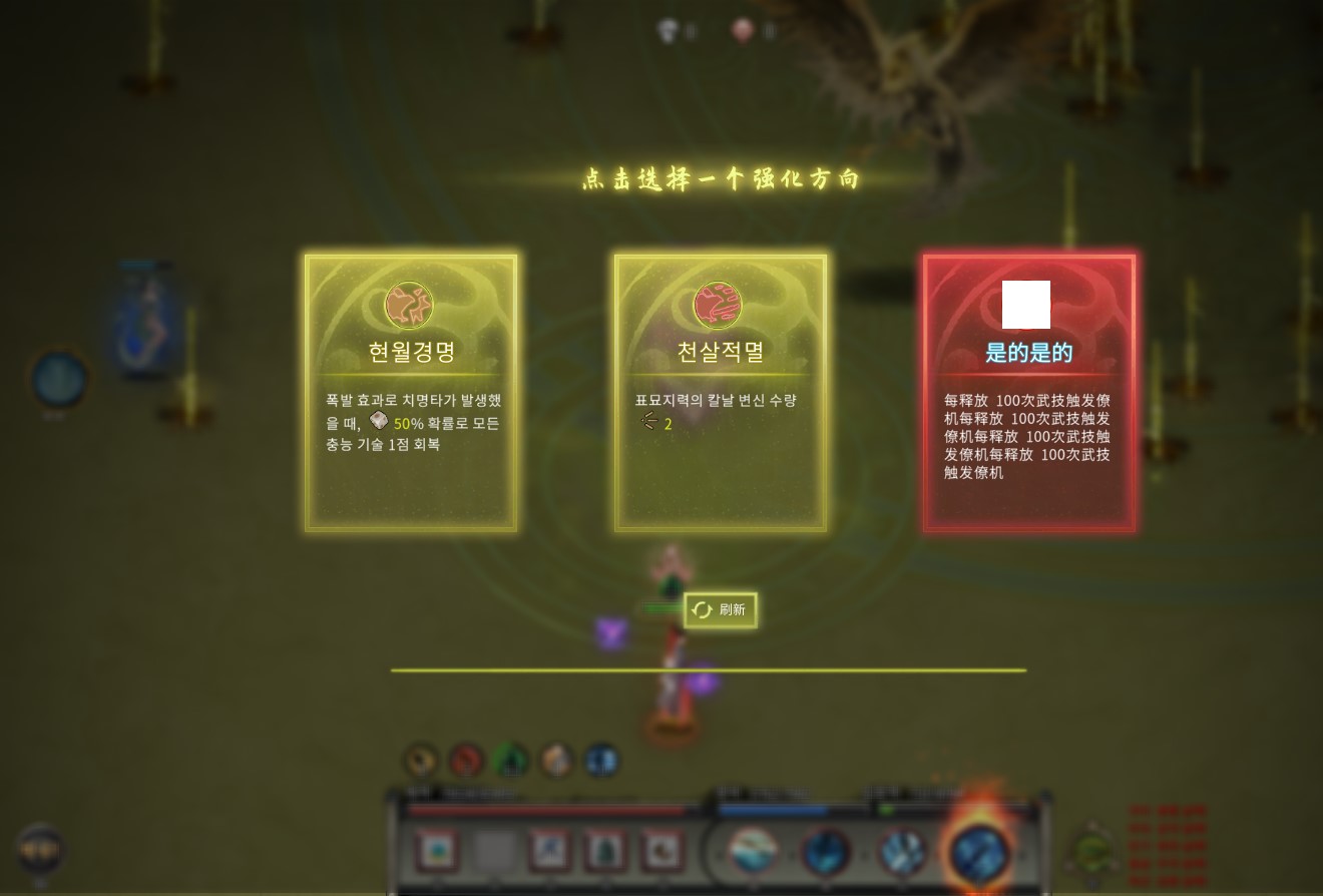 모드 안쓴 바닐라상태로 카오스난이도 오도->우화경 돌파시 번역안된 선택지가 같이 뜨면서 넘어가지질않네요