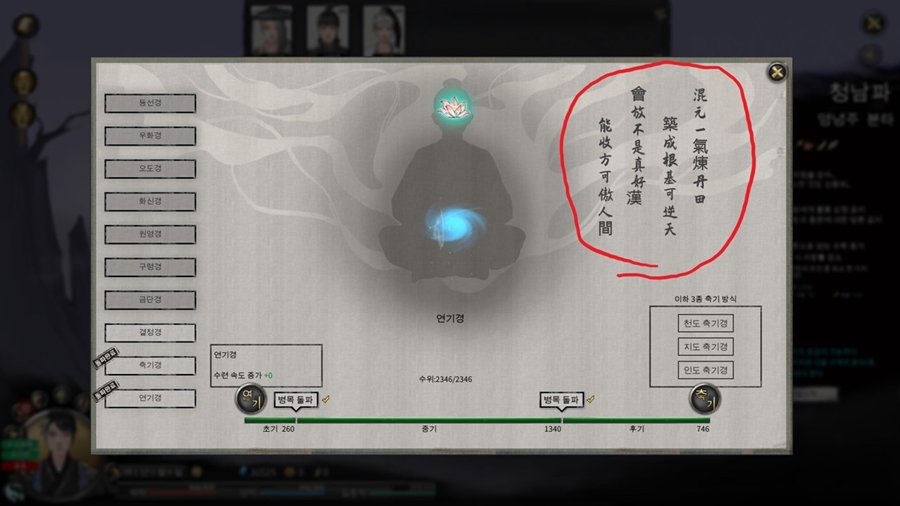 경지 설명 화면이나 돌파 화면에서 나오는 문자도 게임의 분위기를 더 잘 살린다고 판단, 일부러 번역하지 않았습니다.