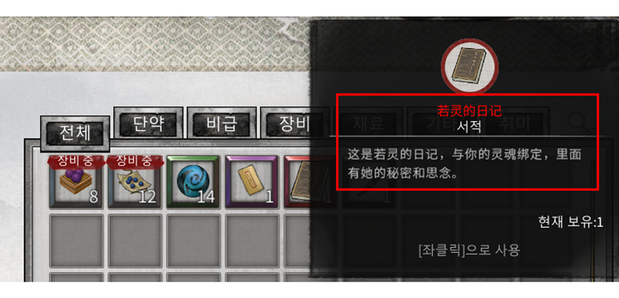 예시) 아래에서 표시한 영역은 게임의 분위기를 살리기 위해 일부러 원문을 사용했습니다.