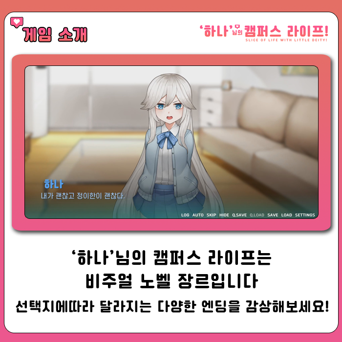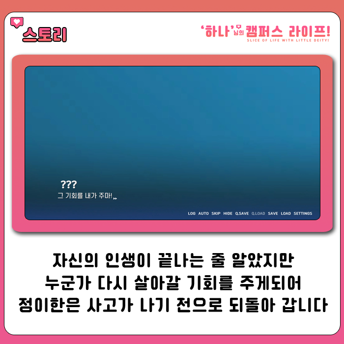 아무튼 게임 리뷰로 들어가자면 이 게임은 비주얼 노벨을 정석적인 방식으로 풀어나간 게임입니다. 네러티브에 강조하며 선택지에 따라서 스토리가 달라지는 형태로 구성되어져 있습니다.