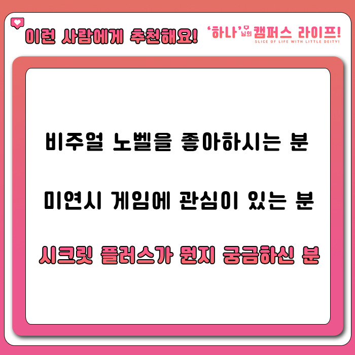 이 게임은 두가지 버전이 있습니다. 하나는 일반버전 또 하나는 시크릿 플러스 버전이 있죠.