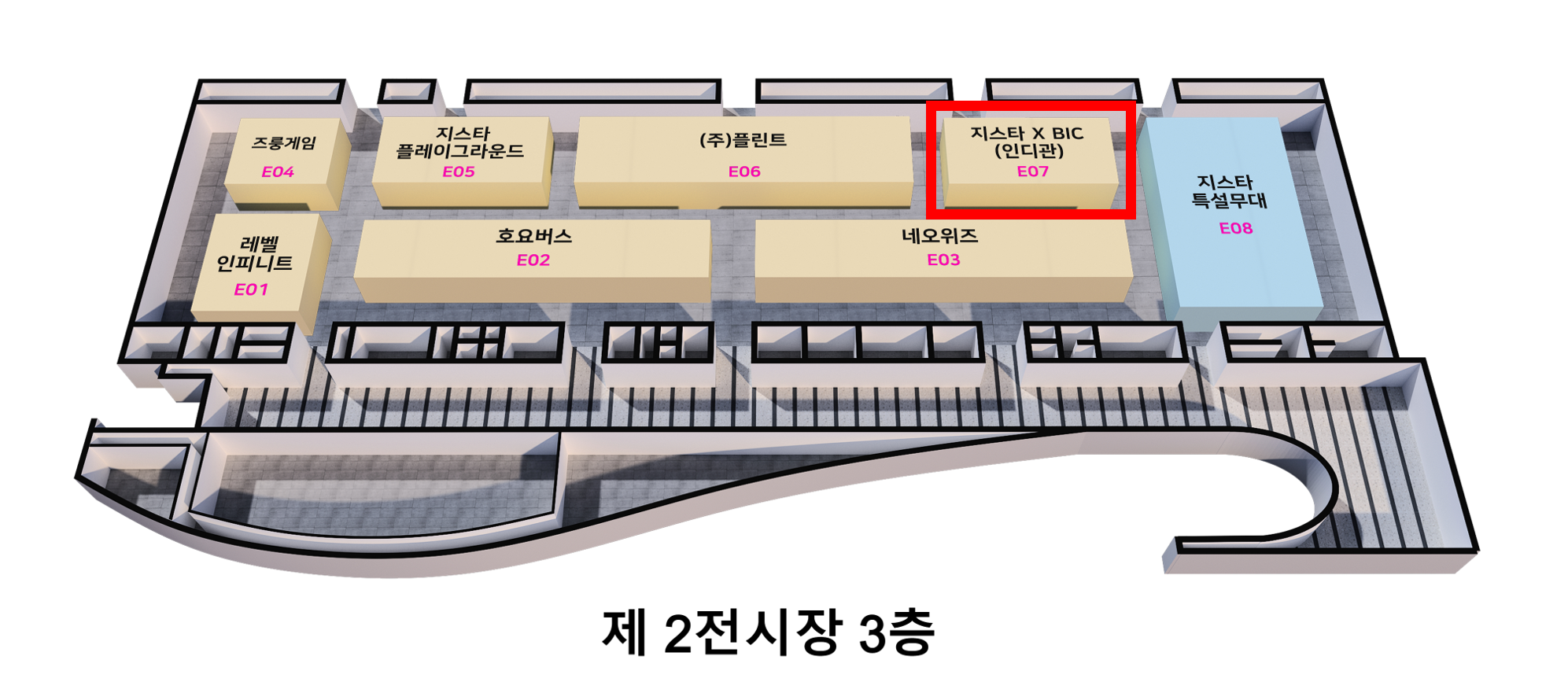 BIC 전시홀은 2전시장 3층 E07 영역에 있습니다.