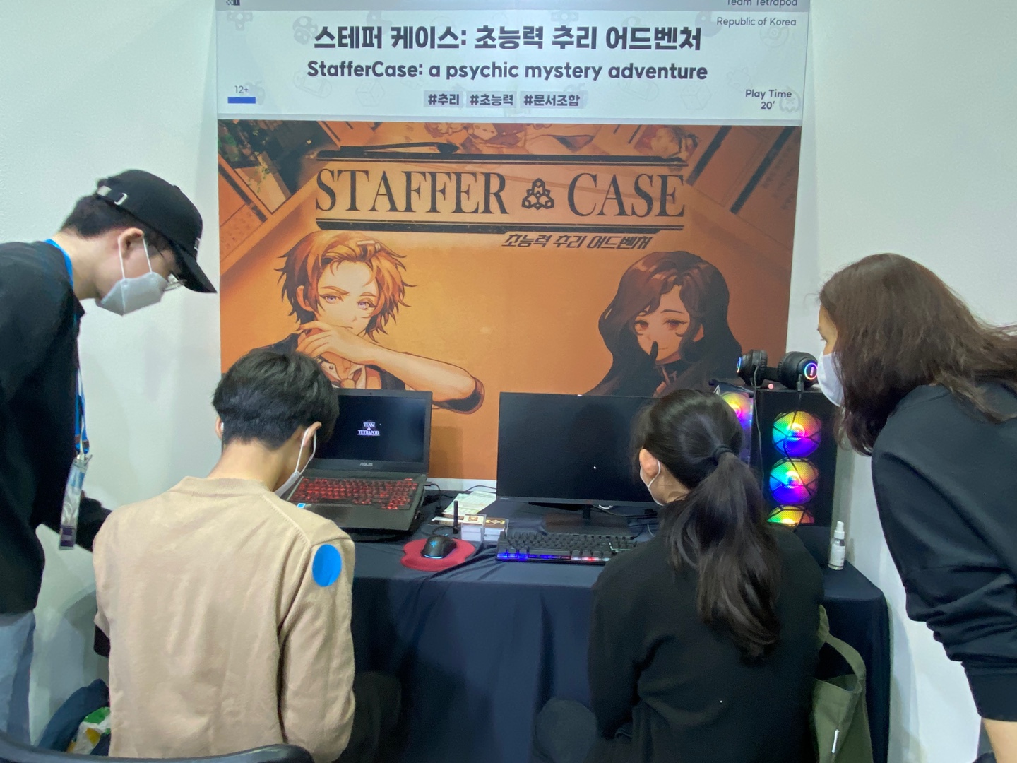 문서 속 단서를 조합해 범인을 추리하는 게임, '스테퍼 케이스'의 모습입니다.