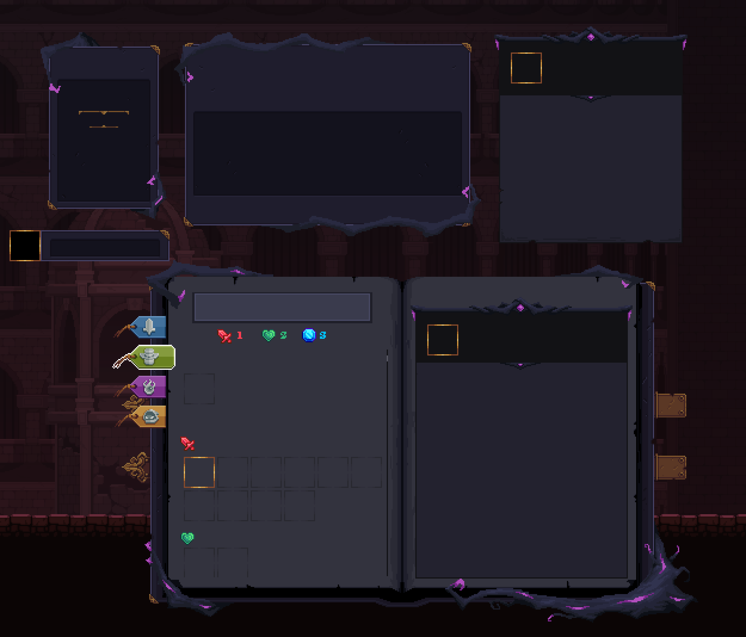 기존 UI는 스토리와도 어울리지 않고 각 UI가 따로 노는 느낌이 강했습니다. 딱 봤을 때 나이트메어: 더 루나틱의 UI구나 싶도록 다시 디자인하고 있습니다.
