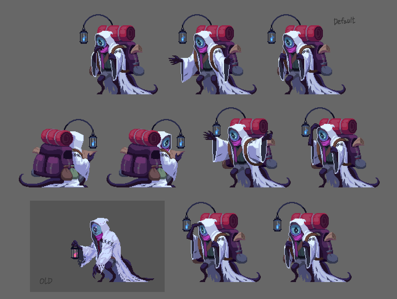 꿈 상인이 더 귀여워졌습니다! 기존 꿈 상인은 옛날에 작업해서 현재 디자인 컨셉과 좀 동떨어진 부분이 있습니다. 상인의 디자인을 좀 더 세련되게 변경하고 다양한 동작들을 추가하여 대화가 좀 더 다채롭게 느껴지도록 개발 중입니다.