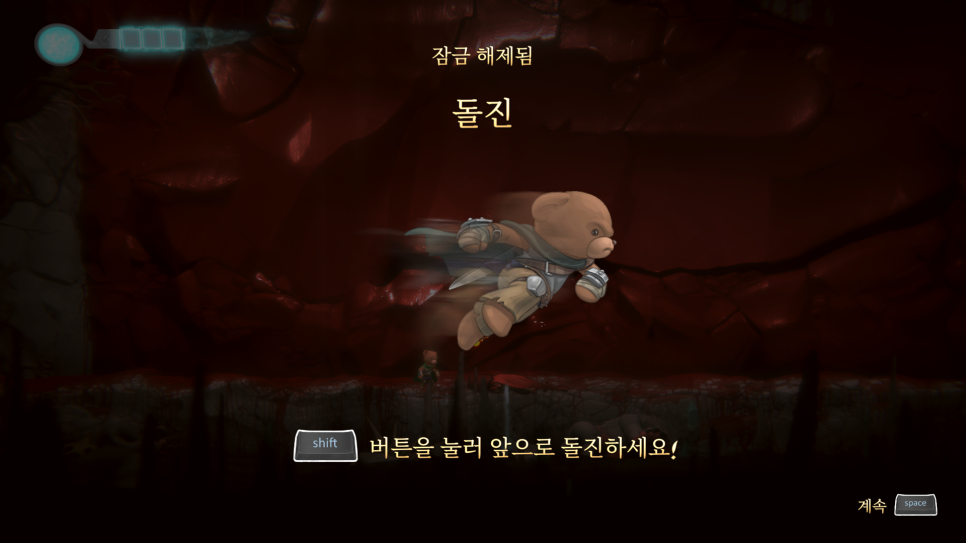Shift로는 돌진 기능을 사용하여 좁은 길을 직선으로 통과할 수 있습니다.