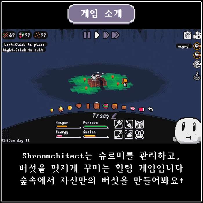 Shroomchitect는 슈르미라는 귀여운 생명체를 관리하는 게임 쪽에 가깝습니다.