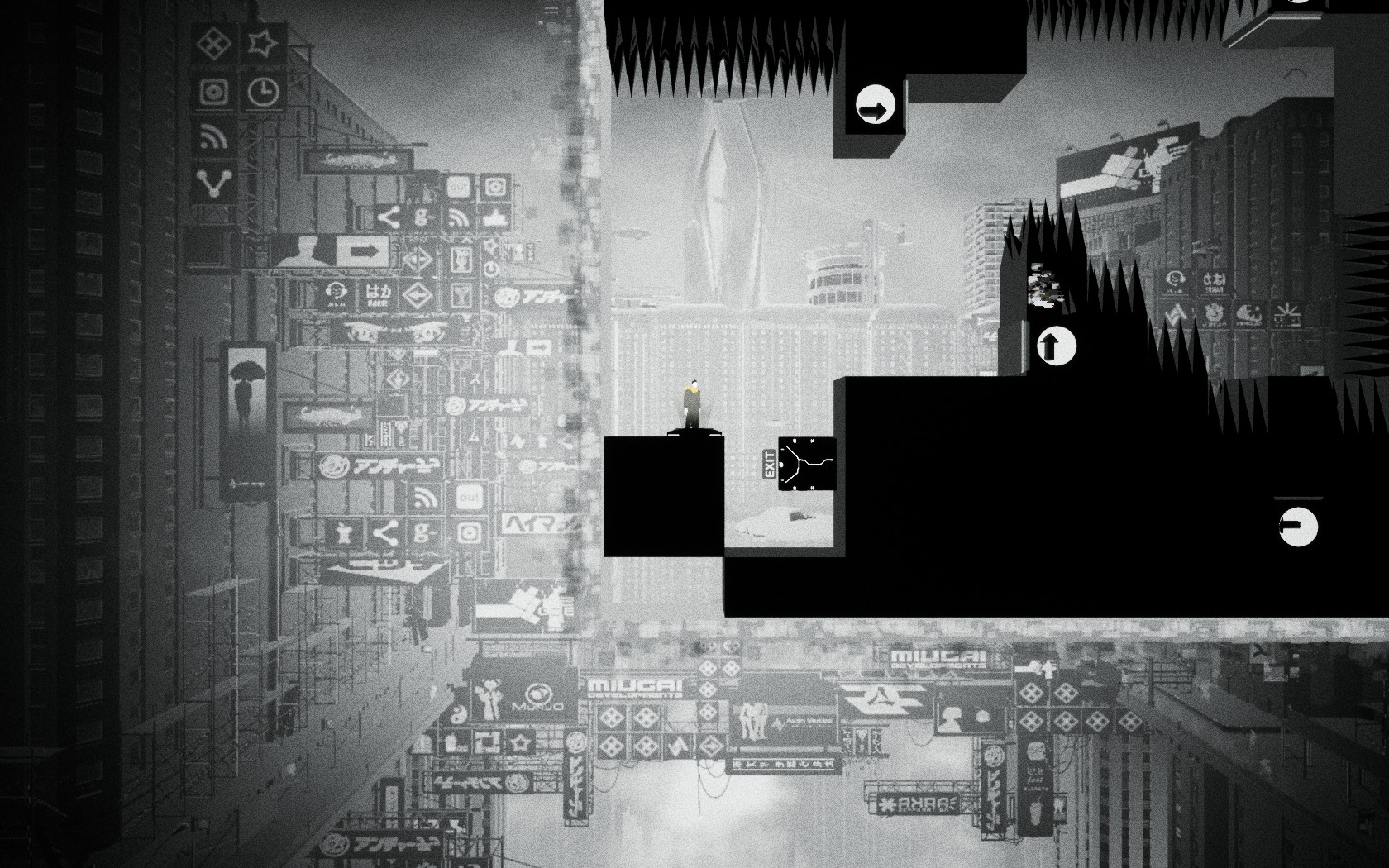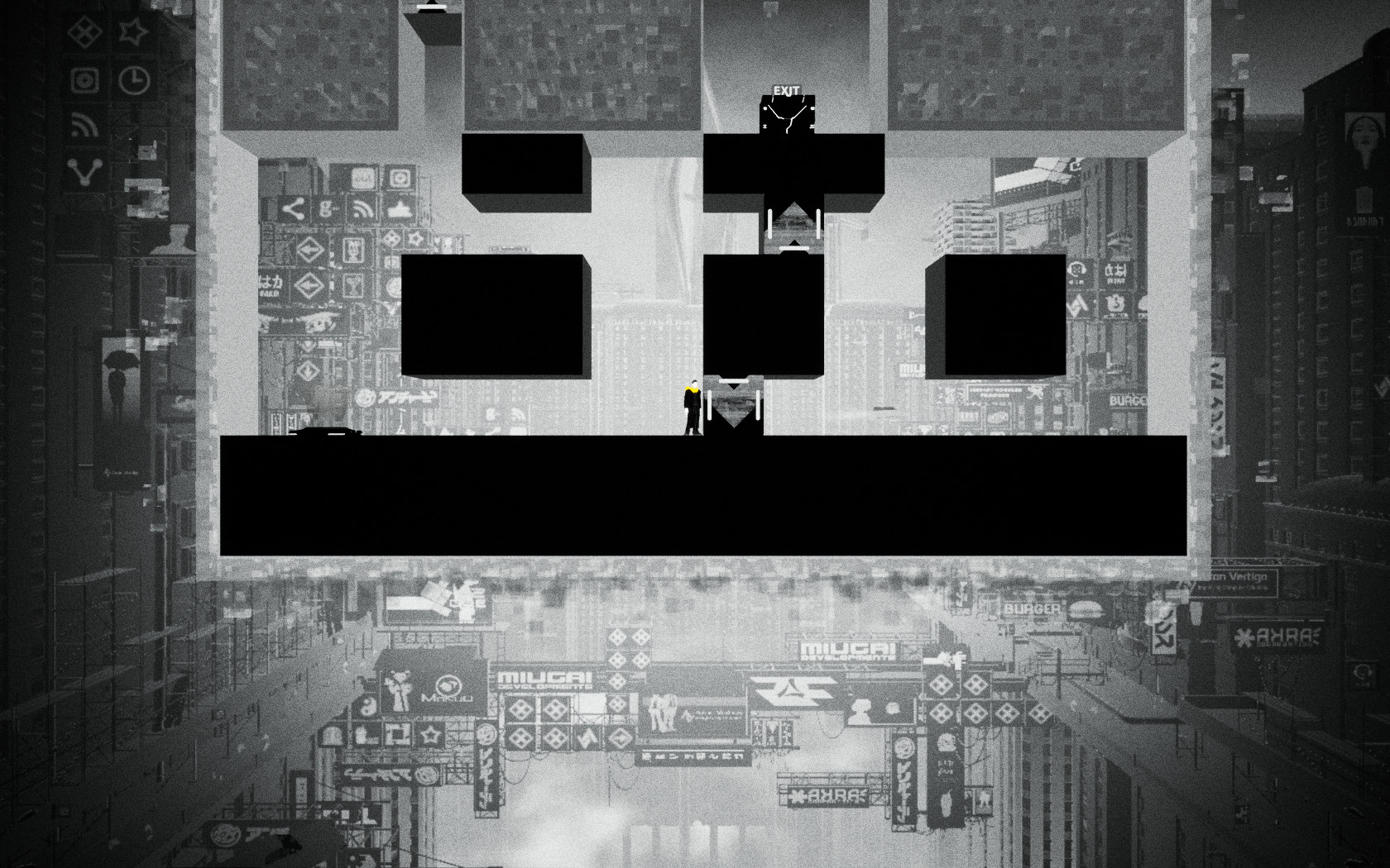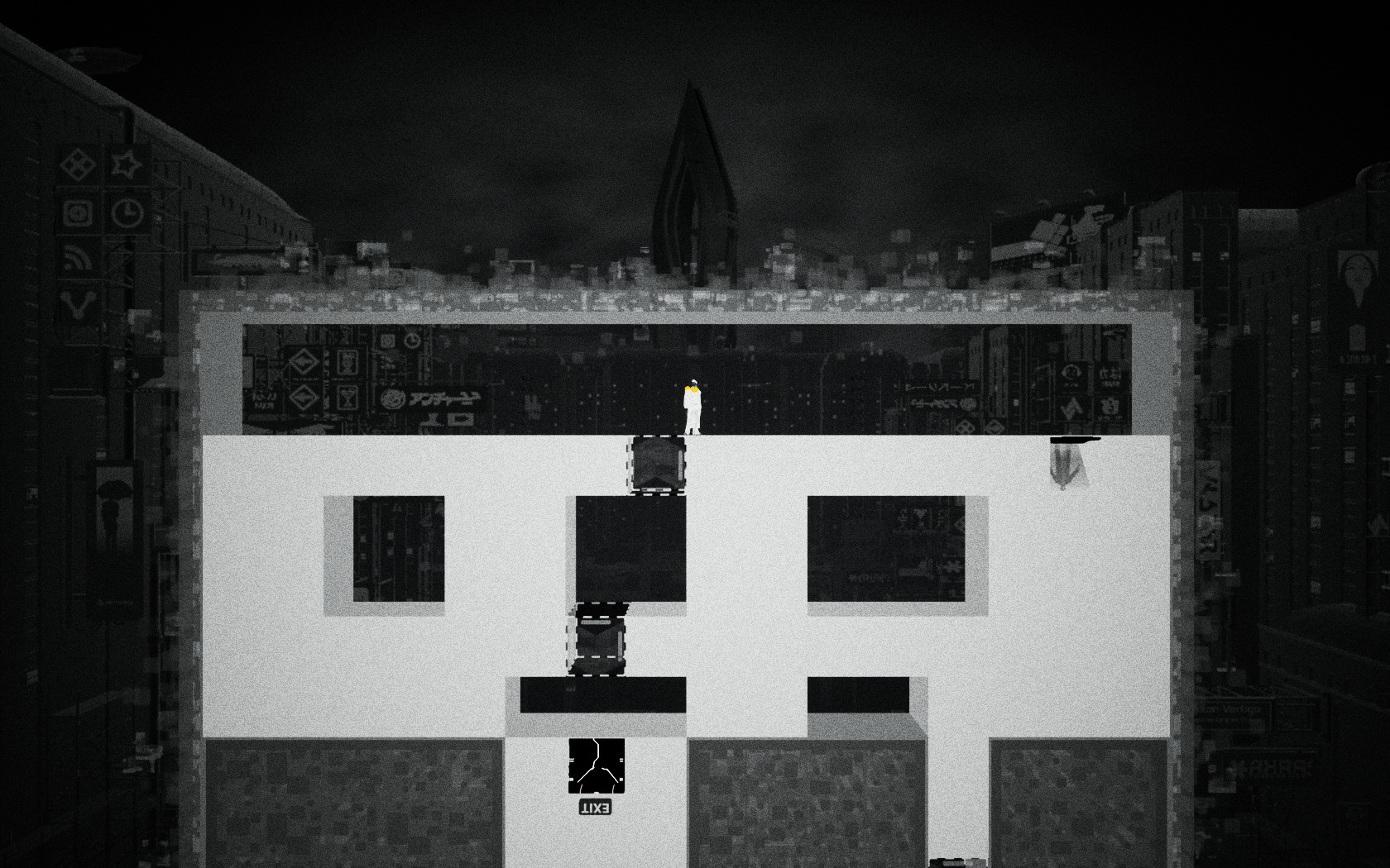 일단 게임의 룰은 주인공이 검은 색의 세계와 흰색의 세계를 오고 가면서 다음 지역(EXIT)로 넘어가는 것입니다. 처음 시작하면 몇가지 간단한 퍼즐을 따라하면서 퍼즐을 푸는 법을 보여줍니다.