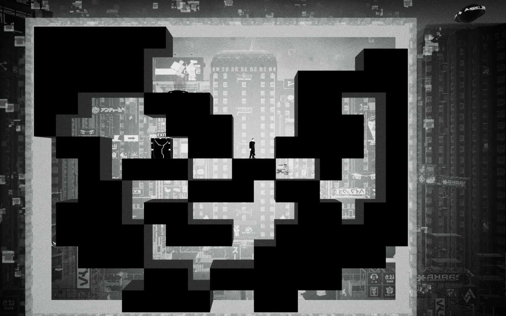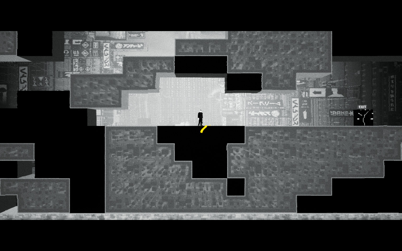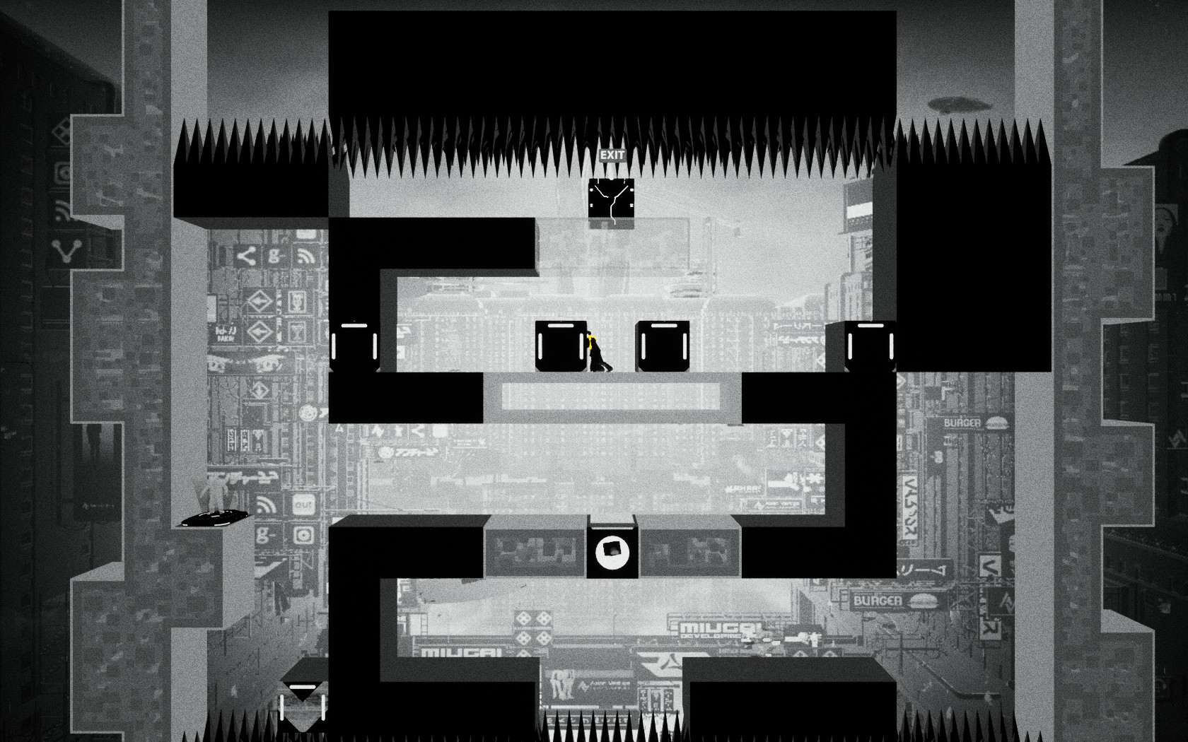 일단 게임의 룰은 주인공이 검은 색의 세계와 흰색의 세계를 오고 가면서 다음 지역(EXIT)로 넘어가는 것입니다. 처음 시작하면 몇가지 간단한 퍼즐을 따라하면서 퍼즐을 푸는 법을 보여줍니다.