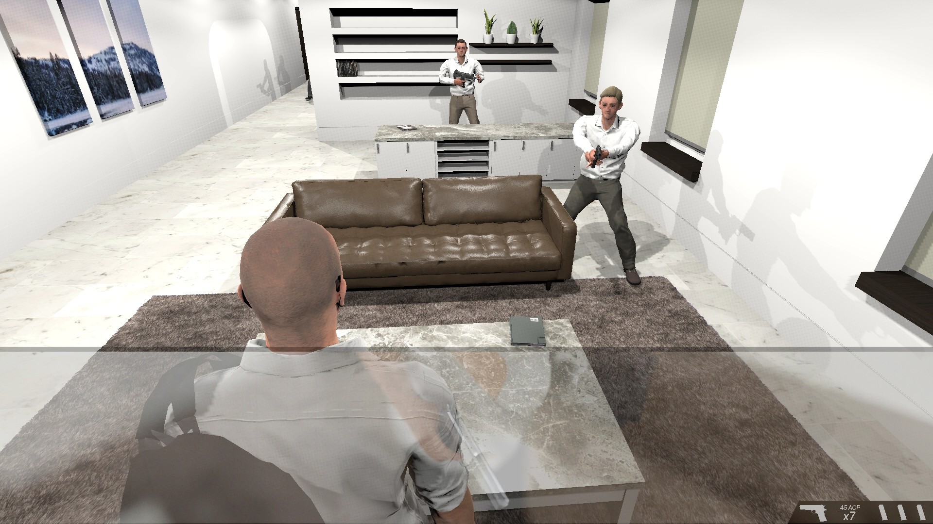 문을 열자마자 다수의 적이 배치되어 있어 한 명을 쓰러트리고 잠시 엄폐하는 움직임이 필요하다거나