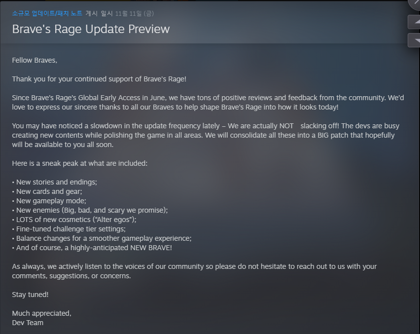 2022년 11월 11일 날 앞으로 이런것이 추가될 것이다. 라는 공지를 올렸습니다.