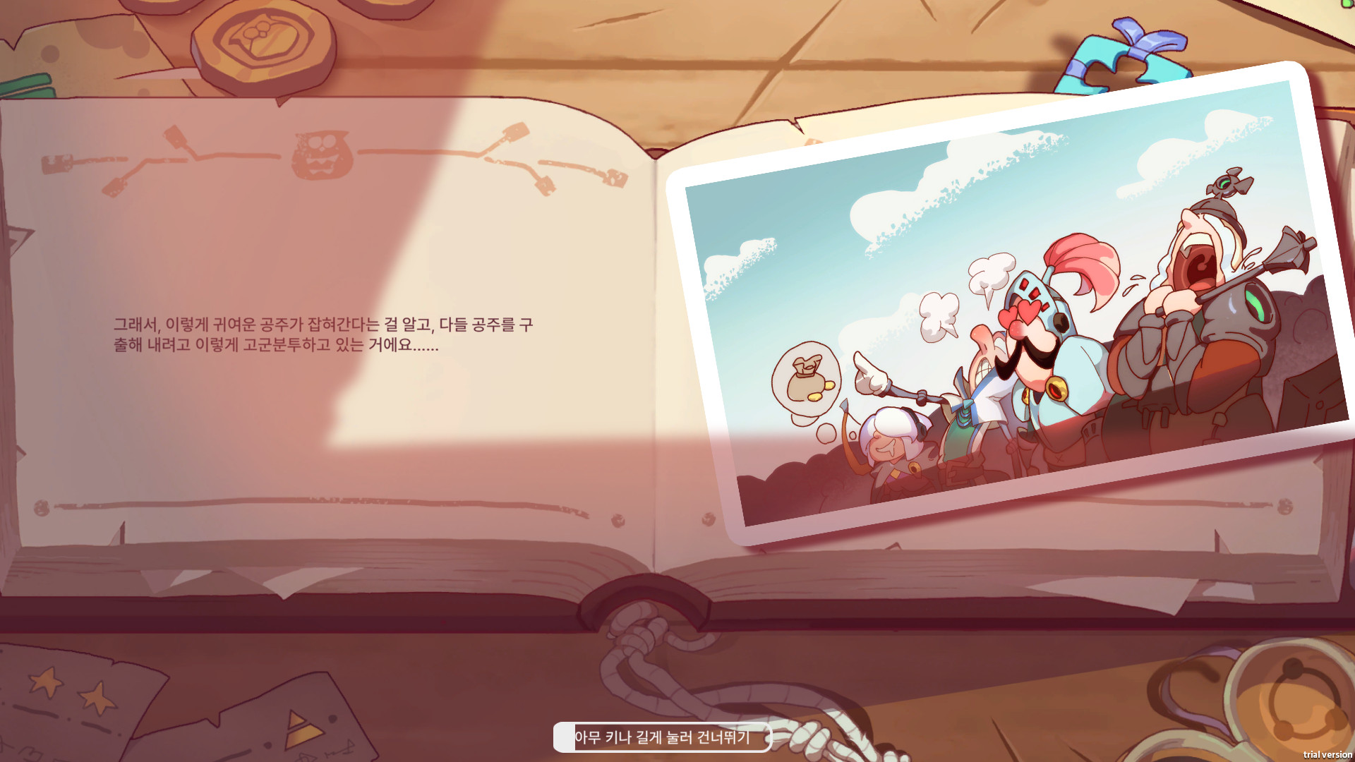 <용사들이 공주를 구하러 간다는 스토리 입니다.>게임의 스토리는 용이 공주를 납치하고 공주를 구하기 위해서 용사들을 모집하고 용사들이 공주를 구하러 간다는 이야기 입니다. 게임 스토리는 매우 단순합니다.