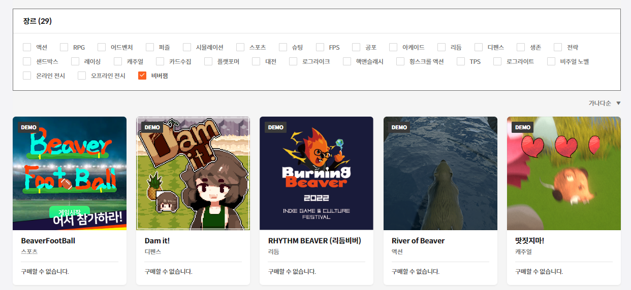 TIP. 장르에서 비버잼을 체크하면 해당되는 게임만 확인할 수 있어요!