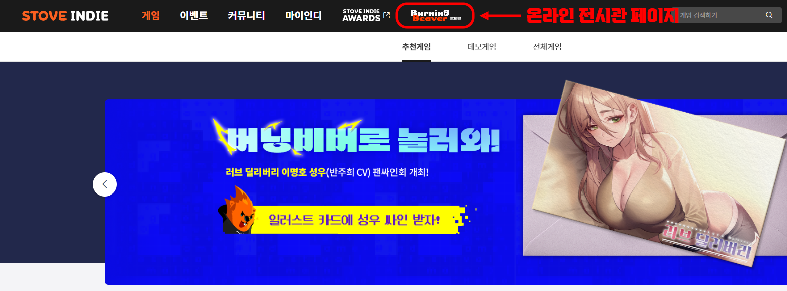 스토브인디에서 만나보실 수 있는 버닝비버 온라인 전시관은