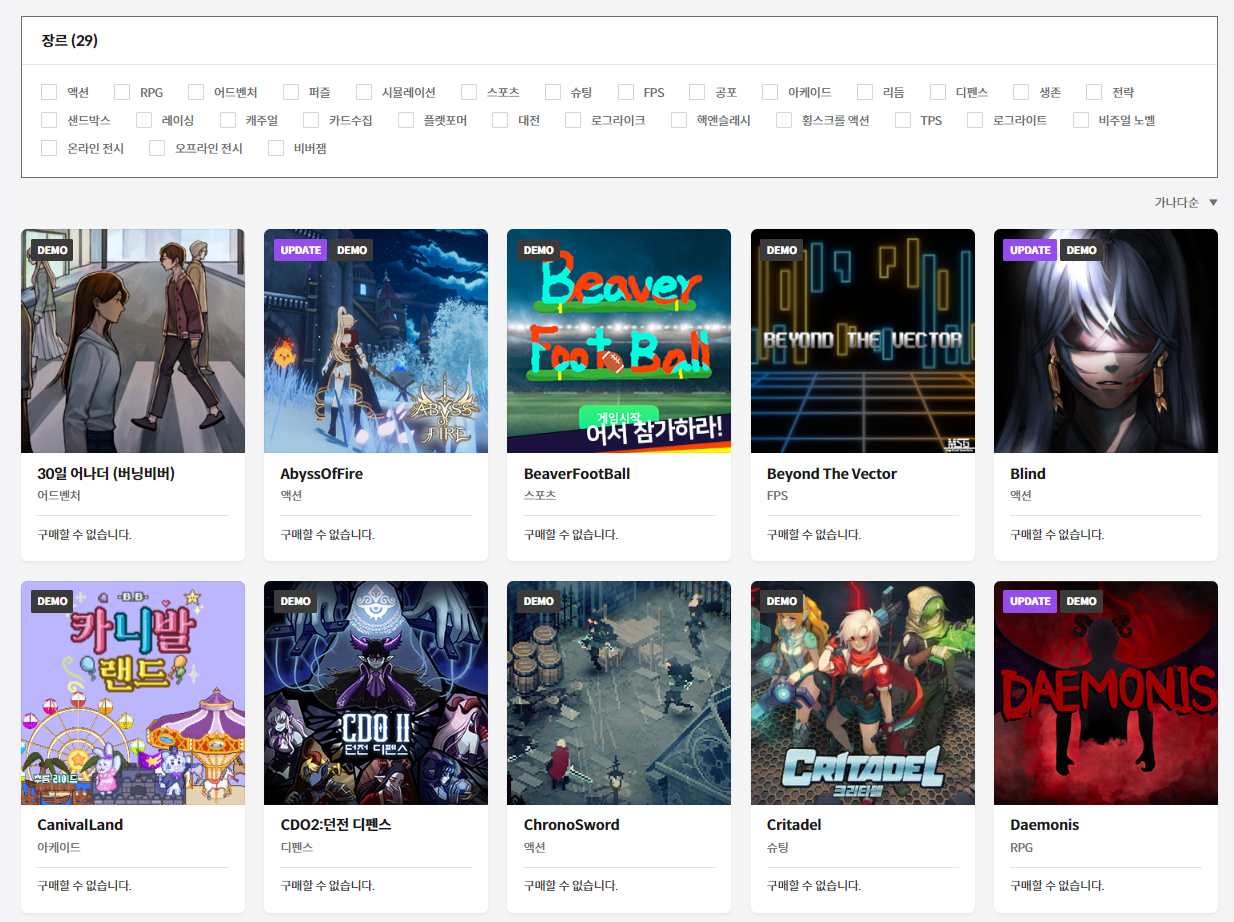 액션, RPG, 비주얼 노벨 등 다양한 장르의 게임들이