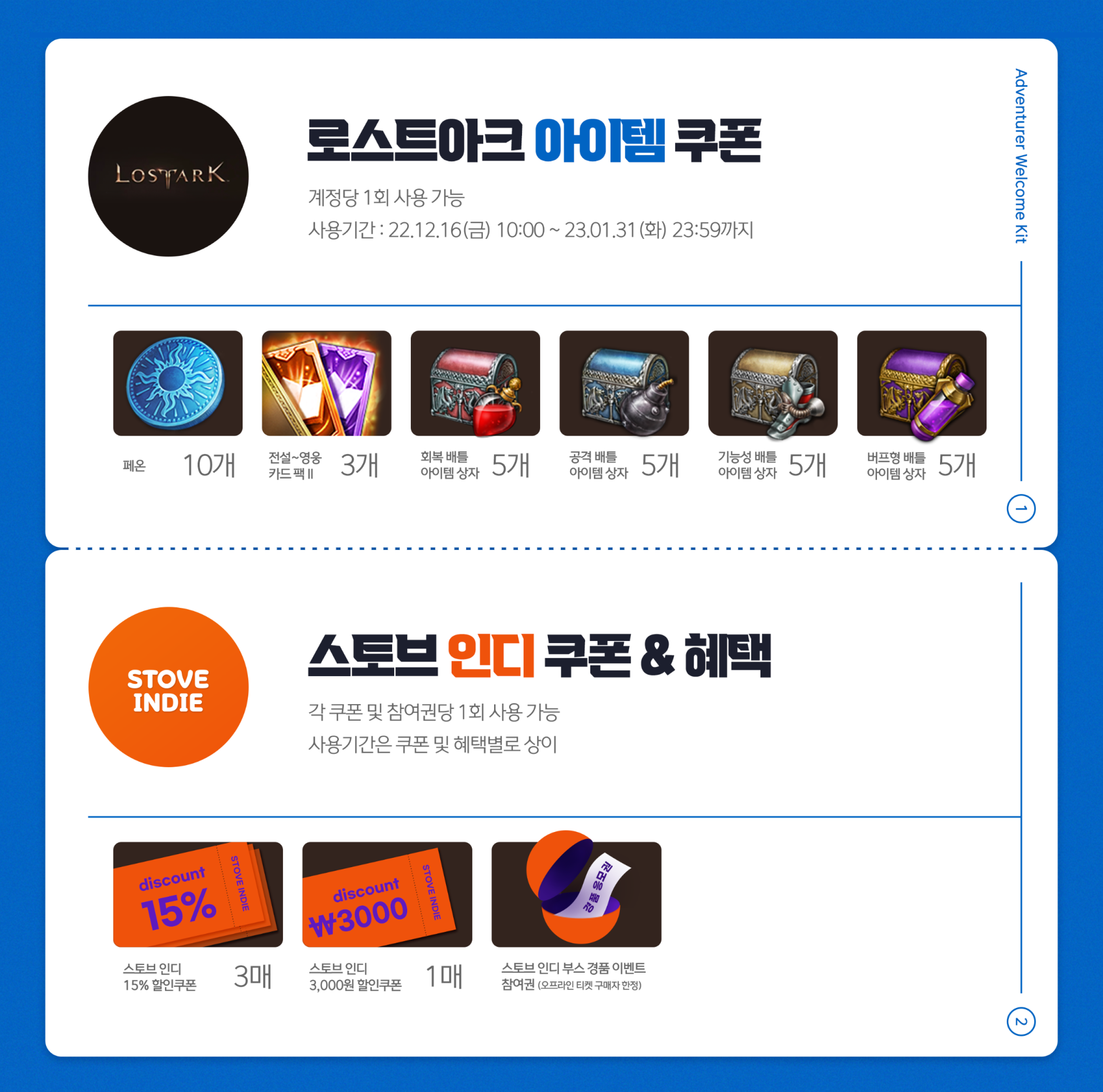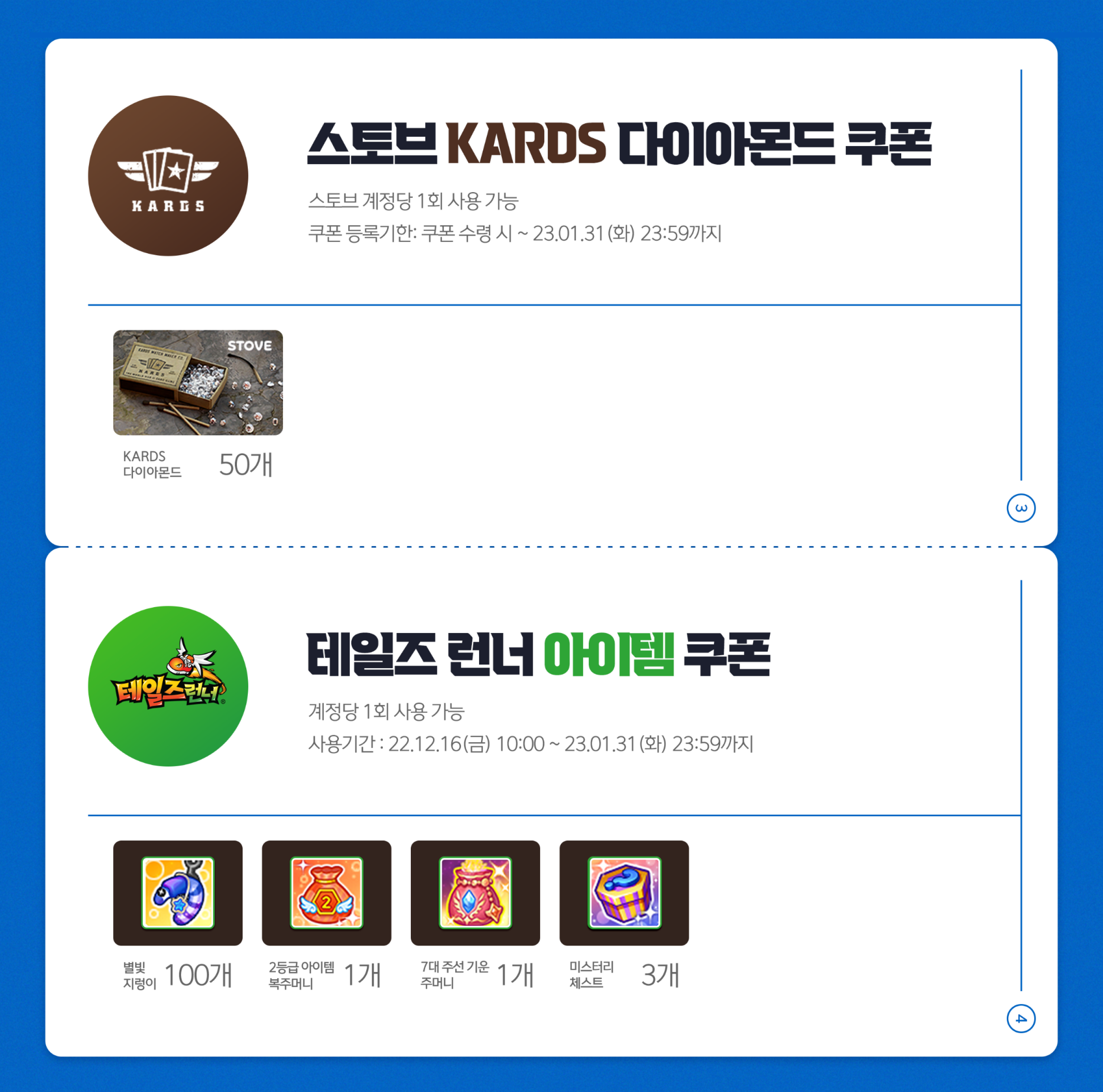 로스트아크, 스토브인디, KARDS, 테일즈런너 쿠폰이 포함된