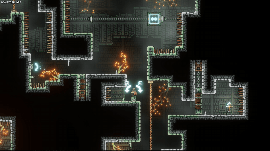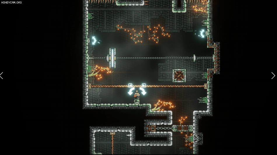 이 작품의 타이틀 '그래비티캐슬'에서 알 수 있듯이 중력은 이 작품을 관통하는 핵심 소재입니다. 맵 곳곳에 있는 버튼을 통해서 자유자재로 중력의 방향을 회전시킬 수 있으며 이를 통해 갈 수 없는 곳을 접근할 수 있습니다.