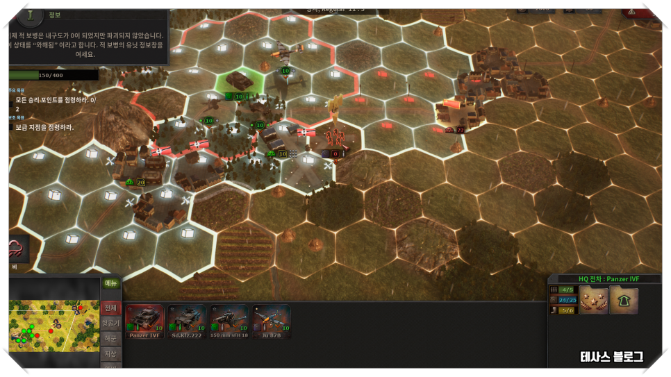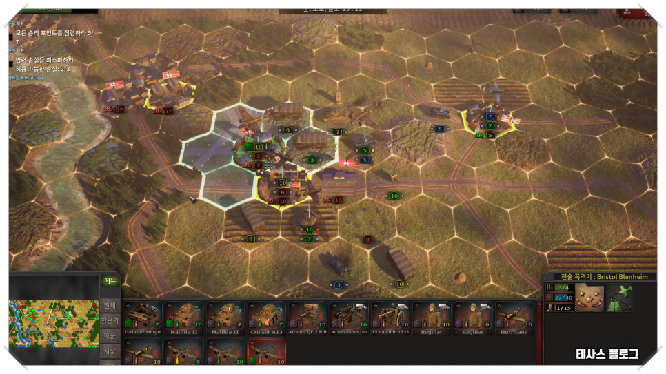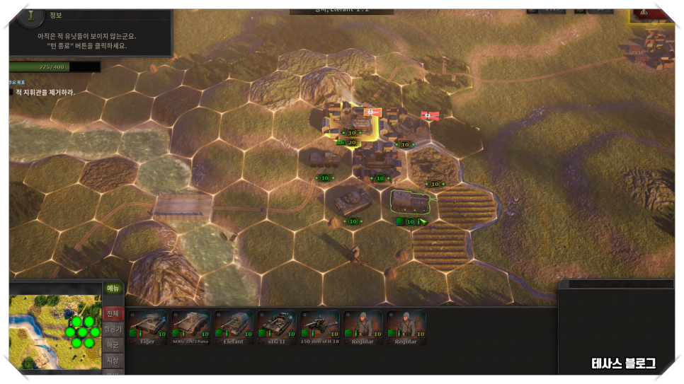 한판이 길지만 유닛들의 이동력은 의외로 넓은 편이라 진행하는게 루즈한 편도 아닙니다.