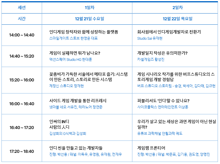 게임과 함께 살아가는 다양한 연사분들의 발표를 듣고, 이야기를 나누고 싶으시다면