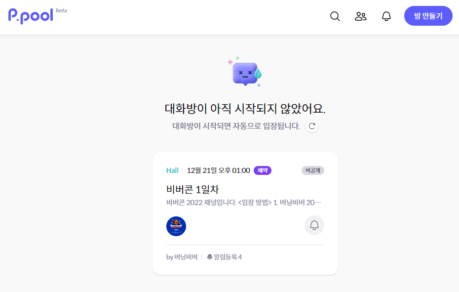 ③ 버닝비버 온라인 전시관에서 아래 배너를 클릭해 P.pool 비버콘 채널에 접속한 후,