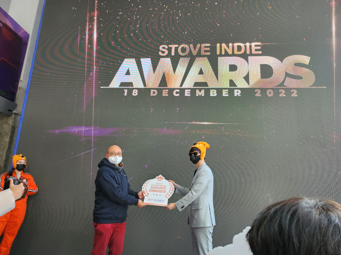 꽁꽁 싸매신 온파이어 게임즈의 대표님이 베스트 파트너상을 수상하며 스토브인디 어워즈는 마무리되었습니다.