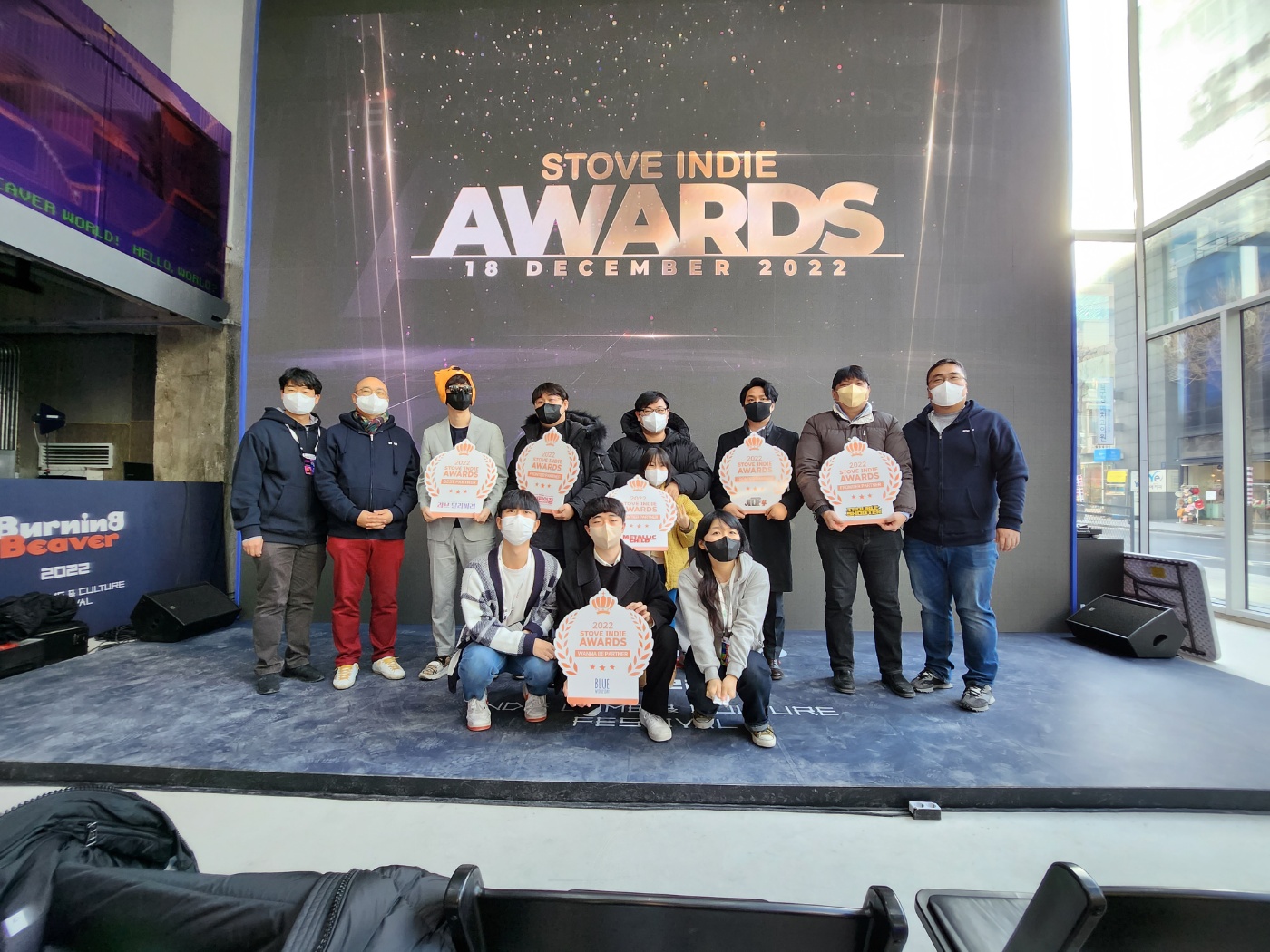 인디 게임씬에 관심이 있는 분들이라면 모를 수가 없는 게임들이 모두 수상하는 걸 보며 수상 기준에 대한 논란은 생기지 않겠다는 생각이 들었고, 참여해 상을 받으신 모든 개발자 분들의 단체사진으로 2022 스토브인디 어워즈는 끝을 맺었어요.