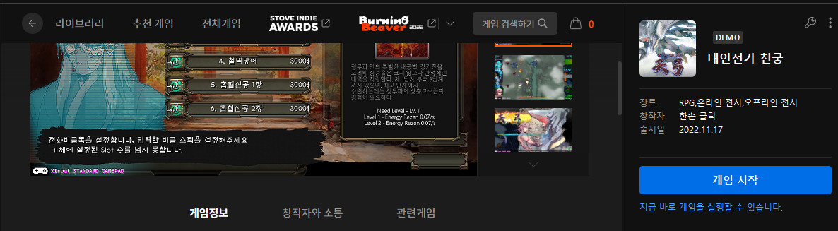 버닝비버에서 소개되는 게임들 중에는 다양한 장르적 시도가 많았습니다. 물론 로그라이크나 소울라이크 등의 게임의 비중이 적은 건 아닙니다. 하지만 이전보다는 다양한 장르가 더 많아졌습니다.