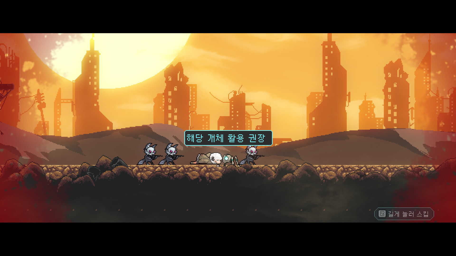 로그라이크이지만 적극적인 공격을 유도하기 위해 떨어진 HP를 적을 공격해서 회복한다는 독특한 시스템을 가지고 있습니다. 기본적으로 로봇이기 때문에 데이터를 다운로드해서 스킬을 익히는 방식입니다.