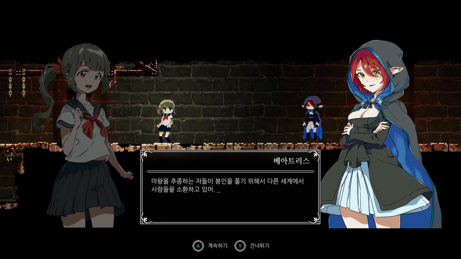 게임의 스토리는 이 세계로 납치 당한 부작용으로 기억을 잃은 주인공이 베아트리스라는 여성으로부터 마왕의 추종자 들을 처리하면 기억을 되찾을 수 있다는 말을 듣고, 마왕의 추종자들과 싸우기 위해서 폐허가 된 성을 돌아다닌다는 스토리입니다.