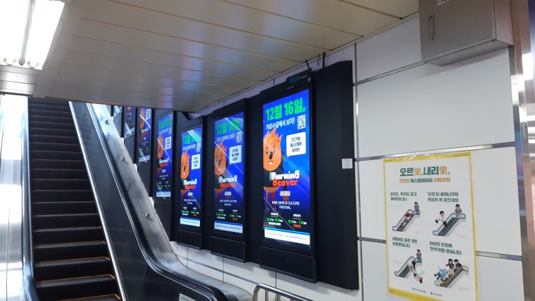 3일차때 알았지만 신사역에 버닝비버 광고가 나오더군요! 타이밍에 맞춰서 찍었습니다.