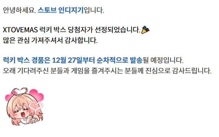 어떤 선물이 당첨되었는지는 모르지만!