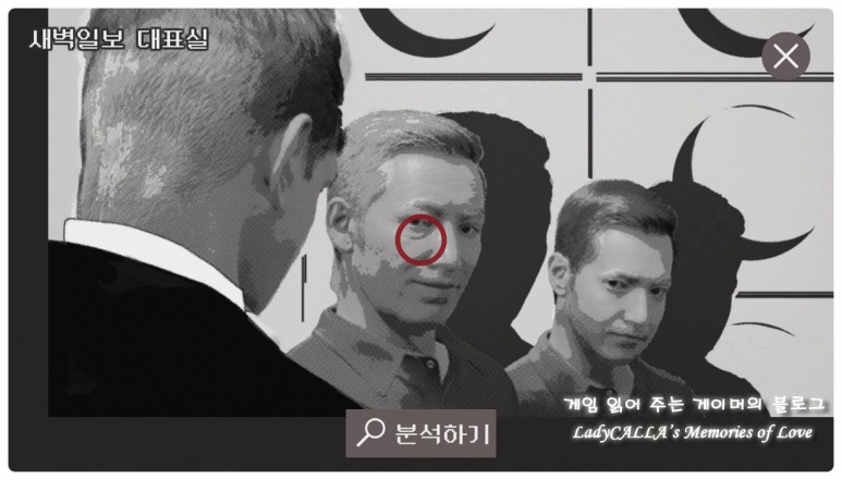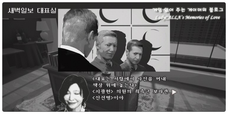 이에 추가로 새벽 일보의 대표와의 대화를 통해서, 중앙 수사국이 지광현 의원의 피살 사건의 유력 용의자로 지 의원의 보좌관인 '진선명'을 거론하고 있다는 사실도 알게 된다.