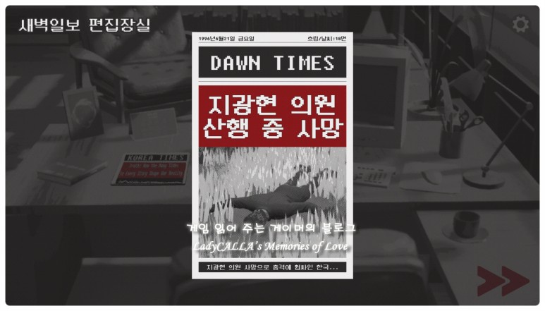 체험판에서는 '지의원 피살 사건'과 관련한 단 한 건의 기사 발행 작업만 진행할 수 있지만,