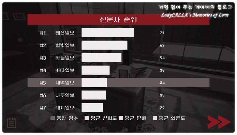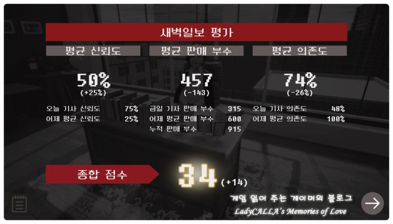 이제 새벽 일보의 편집장이 된 플레이어가 앞으로 어떤 기사들을 발행하느냐에 따라서,
