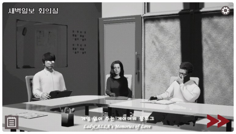 '편집장'의 아트들은 체험판 기준 처음부터 끝까지 흑백으로만 표현되는데, 색상을 제거한 이 무채색의 아트들이 '편집장'에 독특한 분위기를 선사해 준다.