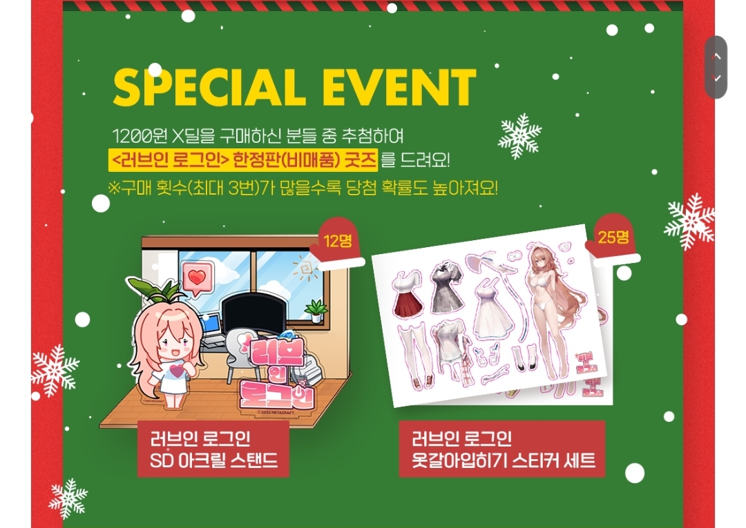 1200X딜 당첨자 발표는 23년 1월 3일(화) 진행될 예정입니다. 잠시만 기다려 주세요!