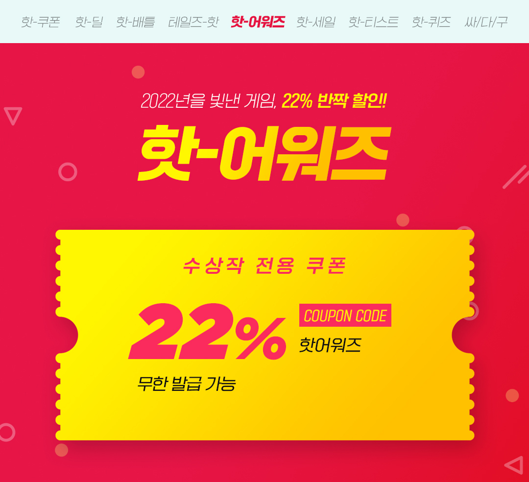 10๊ฐ ๊ฒ์์ ์ ์ฉ ๊ฐ๋ฅํ 22% ํ ์ธ์ฟ ํฐ์ ๋ฐ์ ์ ์๋