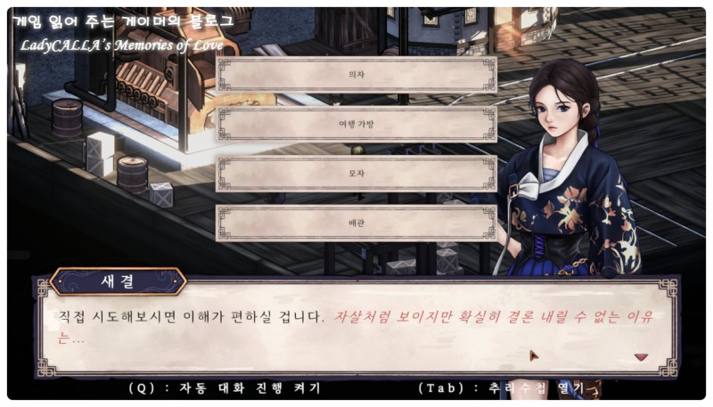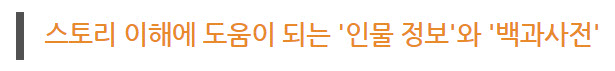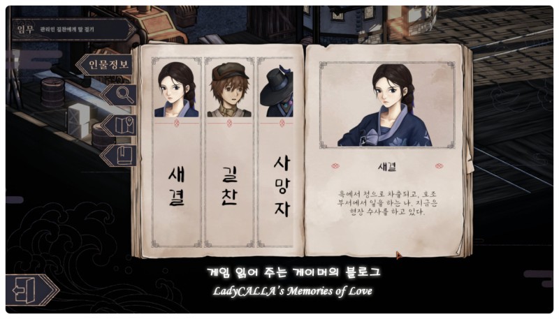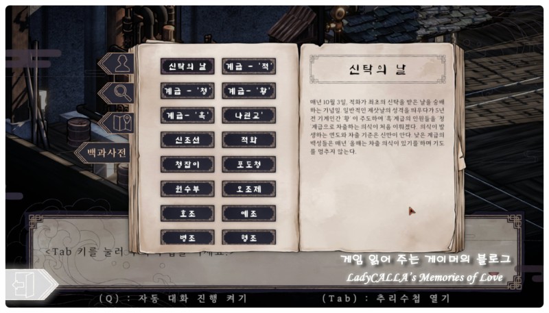 추가로 낯선 '신조선'이라는 세계관에 대한 이해를 도와주는 '백과사전' 항목이 있어서, 가상의 '신조선'과 관련된 다양한 용어들의 의미를 빠르게 바로바로 확인할 수 있다.